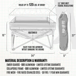 The Heat Shield, constructed of Aluminum Fiber Glass and high temperature resistant hook & loop straps. Use the heat shield when burning on sensitive surfaces like grass, wood decks, or public lands.
