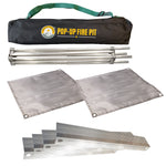 The Heat Shield, constructed of Aluminum Fiber Glass and high temperature resistant hook & loop straps. Use the heat shield when burning on sensitive surfaces like grass, wood decks, or public lands.
